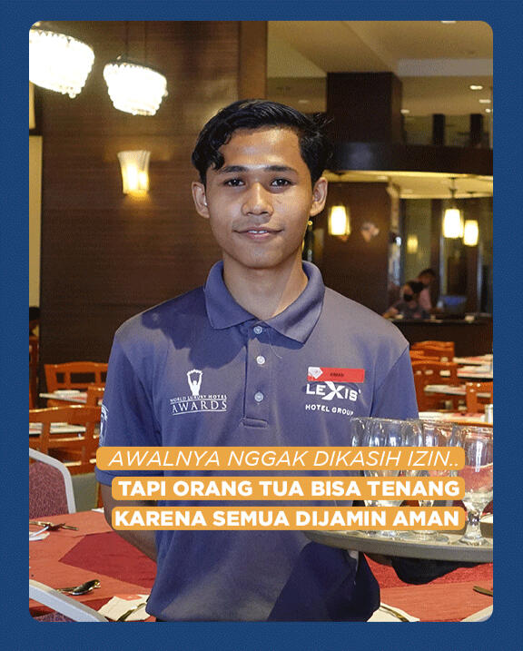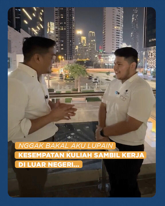 Awalnya tau program ini kaget banget, baru tau ada program kuliah perhotelan sambil kerja di luar negeri dengan biaya yang cukup terjangkau.Pas dijalanin, bener-bener nggak nyesel.Aku belajar dulu tuh, online di Jakarta, ikut program foundationnya. Kurang lebih 10 bulan, itu diajarin langsung sama mentor dari Malaysia. Pas udah selesai, aku langsung berangkat ke Malaysia buat kuliah sambil kerja gitu. Semuanya bener-bener diajarin dari awal sampe kita ngerti. Pengalaman yang nggak bakal aku lupain.