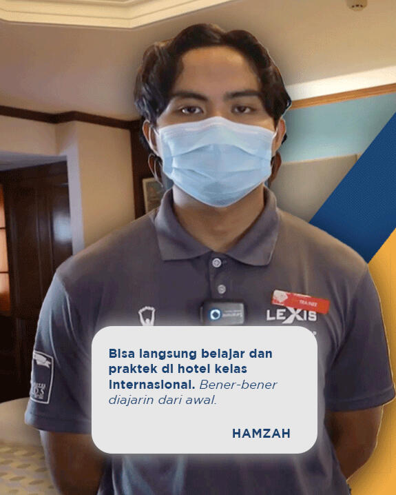 Awalnya tau program ini kaget banget, baru tau ada program kuliah perhotelan sambil kerja di luar negeri dengan biaya yang cukup terjangkau.Pas dijalanin, bener-bener nggak nyesel.Aku belajar dulu tuh, online di Jakarta, ikut program foundationnya. Kurang lebih 10 bulan, itu diajarin langsung sama mentor dari Malaysia. Pas udah selesai, aku langsung berangkat ke Malaysia buat kuliah sambil kerja gitu. Semuanya bener-bener diajarin dari awal sampe kita ngerti. Pengalaman yang nggak bakal aku lupain.